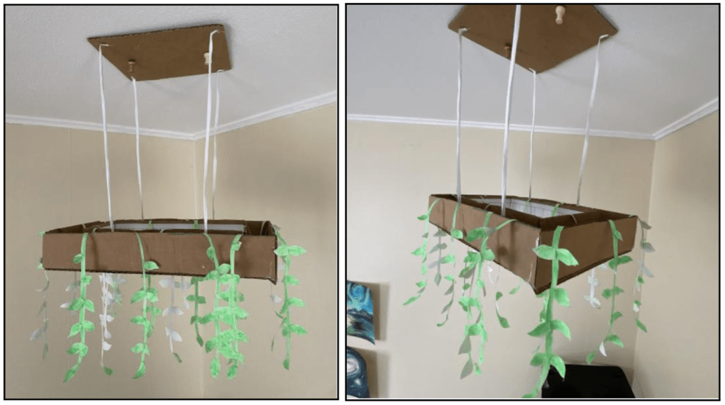 Materials: Carboard, paper, hot-glue, thumbtacks